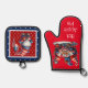 A Patriotic 4Th Of July Red White And Blue Oven Mitt Set Designed With American Gnomes