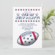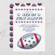 Sports games inspired invitation for a 4th of July barbecue party with illustrations of a football, baseballs and basketballs.