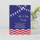 A fun red, white and blue 4th of July party invitation with flags and chevrons. This invitation can easily be adapted for a corporate event. Just contact us at prettyfancyinvites@gmail.com if you need help with that.