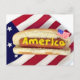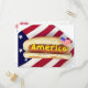 America written with mustard on hot dog in bun on flag plate for holiday party