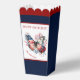Popcorn boxes with an American Flag butterfly, flowers, and fireworks in national colours. Elegant design with a patriotic theme on the dark blue background. Easily personalise the text or leave it blank. - Kate Eden Art