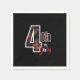 4th of July bright fireworks napkin deign. Bright colourful fireworks inside the number 4 on a bold black background. July is written in patriotic red, white and blue. Perfect Independence day party supply.
