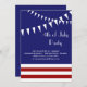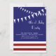 A fun red, white and blue 4th of July party invitation with flags and stripes.