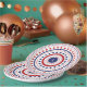 Modern 4th Of July 'Independence Day' Red, Blue, And White Stars And Rings Fireworks Monogram Backyard BBQ / Barbeque / Barbecue Party Paper Plates.