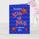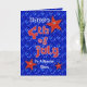 Cute red stars and red star filled lettering on a blue sky filled with lights of Independence day fireworks is a fun greeting car for your son, who is an American star. Text may be personalised using the templates provided. Original art and design by Anura Design Studio.