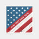 Get ready to celebrate our country as you enjoy your bbq on these striking, graphic, patriotic custom paper napkins. White weathered typography overlays a diagonal, country rustic wood flag background of graphic, red and white stripes and white stars on blue. Personalise with a custom, special greeting or your name. Great for Fourth of July, as well as any time of the year!