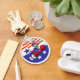 Show your patriotism with this 4th of July design with Uncle Sam riding on a rocket with a red, white and blue background.
