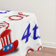 Tablecloth to celebrate America's Independence with 4th of July in 3D blue and red text and Uncle Sam's hat. Tablecloth available in several sizes.