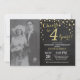 4th Wedding Anniversary with custom photo. Chalkboard Black and Gold Invitation. Forth Wedding Anniversary. Chalkboard Black and Gold Glitter Diamond Background. Gold Confetti. Adult Birthday. Woman or Man Male Birthday Party. For further customisation, please click the "Customise it" button and use our design tool to modify this template.