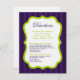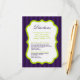 This 4x5 Sized Lime Green & Purple Stripe Ashley Reception and Ceremony Directions Card is perfect for any couple to place inside of their wedding invitations for their recipients to have directions to the ceremony and to where the reception is being held. These do come with standard white envelopes but you can just discard these since your guests will not need these.