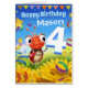 A gorgeous little ladybug hovering above sunflowers and bringing a colorful birthday greeting for the very special 4 year old in your world.