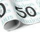 Wrap your gifts for a 50th birthday celebration with stylish wrapping paper with a repeating large bold black "50" over the word "fabulous" repeated behind it in light teal text. A small black ampersand is nestled within the zero of each fifty.