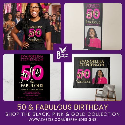 Modern Black Pink Gold 50 and Fabulous Birthday Designed by Jackie RAYMOND