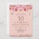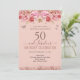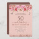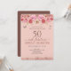 Girly glitter, millennial pink background, with fancy script name typography. Happy 50 and fabulous birthday design template. Pink Roses and butterfly top border. Great for 50th celebrations. Save the date celebration reminder.