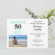 Make turning 50 a simply fabulous and special occasion with this fun and flirty birthday photo invitation. Personalise it and send it out for your big celebration. The words "50 and Simply Fabulous" are in bright blue and black typography. You can change the photo out with your own photo if you'd like. The text colours and styles can be changed through the edit menu. The back of the invitation has a beautiful grey geometric pattern with circles.
