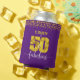 “50 and fabulous.” Own it and usher in 50 with style! This stunning, modern, graphic faux gold foil “50” and dots on a purple background, 50th birthday personalised can cooler will help make her birthday special. Matching and coordinating invitations, envelopes, labels, paper napkins, paper plates, mugs and other items are also available. Makes a great addition to the festivities!