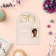 Against a backdrop of gold glitter is a milestone birthday invitation you can personalise for a "50 and Fabulous" party. This luxurious frosted acrylic, arch shape invitation has one photograph showcasing the person being celebrated and in simple yet elegant, white calligraphy are the party details. The see thru invitation is unique, stylish and celebratory. You can select an arch shape or a rectangle.