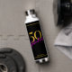 Celebrate turning 50 in style! This elegant 50th birthday water bottle features gold typography and accents as well as chic hot pink script on a black background. Customise it by adding your (or her) name to it.