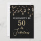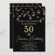 Invite friends to celebrate your loved one's Fabulous Fiftieth Birthday with this classy, 50th birthday design that is easy to personalise just for that special birthday girl. 50 and Fabulous in gold and black with golden strings of light and elegant script.