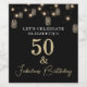 Add a special touch as you celebrate your loved one's Fabulous Fiftieth Birthday gift with this classy, 50th birthday design that is easy to personalise just for that special birthday girl. 50 and Fabulous in black with golden strings of lights. mason jar lights, & beautiful script.