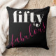 A simple bold statement in white and pink script text on black. This 50 and Fabulous throw pillow is stylish and modern and would make a great home decor gift for a best friend.