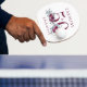 Elegant feminine 50 and fabulous birthday party personalised ping pong paddle with watercolor red burgundy and light dusty blue peony roses bouquets and a modern trendy typography script.