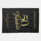 50 and Fabulous Elegant Ornament 50th Birthday Black kitchen towel. 50 and fabulous saying in trendy golden script and a gold ornament. Personalise it with your name and the age.