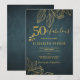 Luxury elegant vintage inspired 50th birthday party invitation template featuring gold leaves foliage and faux gold typography script on a dark midnight blue antique distressed chalkboard background. ----- The invite is suitable for all seasons classy milestones birthday parties - thirty, forty, fifty, sixty, seventy, eighty, ninety, hundred - or other anniversary celebrations. ++++++++++++ It is fully editable and easy to personalise with your details!