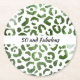 50 and Fabulous Green Cheetah Print Abstract Round Paper Coaster