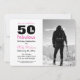 This fun, modern card design features all the text details on the left surrounded by lots of white space, and a black and white photo on the right side. The "50 & Fabulous" elements are rendered in black, white and hot pink. (As a bonus, they coordinate nicely with other designs in my store, geared towards your 50th birthday celebrant.) Each text detail that needs to be changed for your own DIY needs are set up with template fields you can easily change: name, date, party details and RSVP elements. And although you see a picture on the right side, all you need to do is replace my space holder pic with your own photo of the person you're celebrating (preferably in a situation in which she is showing off one of the ways she's memorably fabulous, if you can swing it!) and voila: the design is getting closer to what you need. The space holder photo was used with permission from deathtothestockphoto.com. If you have any reason to keep the template photo for your own use, please just sign up (it's free!) for an account with this cool free photo site and it's yours!//The back of the photo features a bold, retro, wave pattern design that complements the front. (However, as a bonus, there is a totally different style of black and white pattern that's much different - an elegant, feminine white-on-black with wispy curved swirls - hidden underneath that you might choose instead. Alternately, let me know if you'd like a different pattern and I'm happy to help you out!)