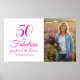 Modern Minimal 50 and Fabulous white photo 50th birthday party poster sign with pink script that you can personalize for your fiftieth birthday party celebration. The words "Fifty and Fabulous" are set using trending bold font typography. . Text colors can be changed using the edit menu.