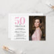 Celebrate your milestone with this elegant birthday party invite! This 50 and Fabulous design features modern typography in a pink and black palette. Easily personalize this 50th birthday photo invitation by adding your favorite picture to honor your fiftieth birthday. The stylish fifty and fabulous card includes a playful pink and white dot pattern on the back. Fully customizable, you can edit colors to create the perfect 50 year old celebration announcement. Shop more 50th birthday designs here.