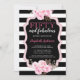 50 and Fabulous Pink Floral Black Stripe Invitation