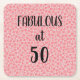 50 and Fabulous Pink Flowers Birthday Square Pape Paper Coaster