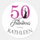 50 and Fabulous Pink Glitter Custom Name Classic Round Sticker