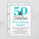 Invite your family and friends to celebrate your loved one's Fabulous Fiftieth Birthday with this bold, elegant 50th birthday design. It is easy to edit the front of the invitation with the birthday girl's name and party information. **BE SURE TO EDIT THE BACK** with her name reminding her how fabulous she is! 50 and Fabulous in turquoise and black text on a white background.