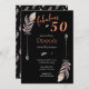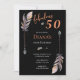 50 & Fab 50th Birthday Black Orange Boho Feathers Invitation