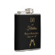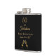 The flask itself is fine. It’s a cheap flask, obviously bought in bulk, however am prepared to overlook that. Given that it is a personalized item, I would have liked to have seen gift boxing instead of the generic packaging. Terrible printing, and/or quality. It’s a cheap, tacky vinyl. It is not cut straight and is also applied in a way that it is overhanging the bottom, causing the glue to catch on items and it will eventually roll and tear, damaging the wrap.
