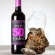 “50 and fabulous.” Own it and usher in 50 with style! This stunning, modern, graphic faux hot pink foil “50” and dots on black, personalised wine label will help make her birthday extra special! Matching and coordinating invitations, envelopes, labels, paper plates, mugs, banners and other items are also available.
