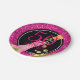 For a sassy 50 year old's birthday party celebration- Woman's hot pink and black Fabulous fiftieth birthday party paper plates in faux hot pink glitter, black, and gold look. Reads '50 & Fabulous' in hot pink on a black circle overlaid on a pink and faux gold foil champagne bottle popping its cork and flowing faux foil gold champagne bubbles. Elegant, pink 50th birthday party supplies for 50 year olds. Other Fabulous 50th birthday party supplies are in our Zazzle.com/angela65* store, as well as matching champagne bottle theme paper party goods.