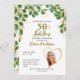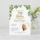 50 & Fabulous Elegant Greenery Photo Birthday Invitation