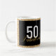 This fun 50 & fabulous birthday mug offers a black and gold design accented with script text and a faux gold glitter border.