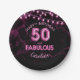 50 & Fabulous Pink Foil Balloons & String Lights Paper Plate
