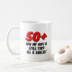 50 Plus And My Mind Is Still Tarp As A Shack funny mug. A great mug for anyone over fifty. Have a laugh with this funny, birthday gag gift. Great for anyone over 50 with a sense of humour!