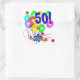 A bright, fun colourful balloon bouquet with lots of bursting red and blue stars ready for you to personalise with any birthday age. Shown is "50!" in bold blue numbers. A great special occasion fun and colourful sticker, favour, or envelope seal! Shown is the large rectangle sticker. Great for the big 50th birthday or any age!