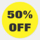 50 Percent Off stickers for store sales promotions. Round glossy promotional discount labels for business. Add your own custom percentage value and background colours. DIY marketing materials for shops, company, outlets, events, special deals, promo mailing, discounters etc. Yellow and black example. Also handy as envelope seals.