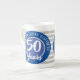 50 Years Birthday Commemorative Mug with grey horizontal stripes. 50 years old. Blue, grey, and white colours. 50th birthday mug. Celebrate a 50th birthday with this blue, grey and white mug.