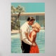 Stylish vintage 1950s graphic from a couple kissing by the swimming pool