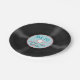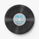 Fun 50's retro style paper plates, with graphics of a vinyl LP record look. The label part of the record is done in pink and blue with blue graphic text reading Sock Hop and pink musical notes. Personalise the black text for your special event.