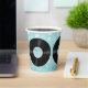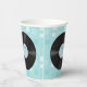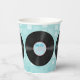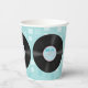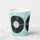 Fun 50's retro style paper cups, with graphics of vinyl LP records, against a light blue pattern background. Matching paper products are available.